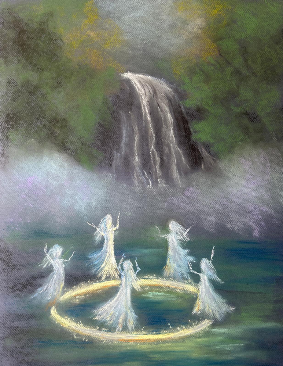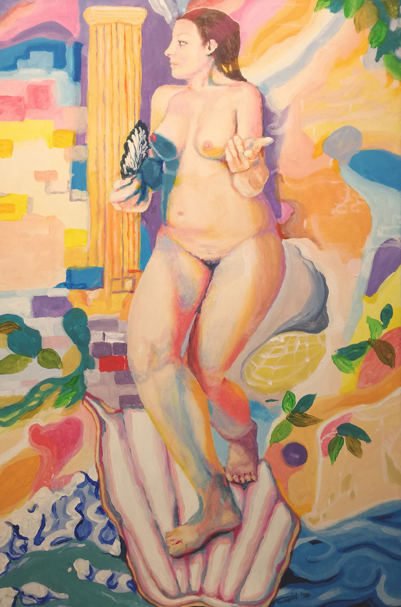 Psiha na slici Marijane Džepine dočekala je sjedinjenje sa svojim ljubavnikom Erosom u rasplesanim, kolorističko-linearnim vrtlozima, kao smrtnica koja na kraju svojih iskušenja postaje boginja, a Penelopa na slici Tamare Perušić u tihoj predanosti posvećuje se svom tkanju, čekajući Odiseja, dok na samom rubu slike iščezavaju sjenke odbačenih prosaca. Vilinski likovi na slikama Marije Tokić i Valentine Kasapović govore o elementarnim silama prirode kao o bajkovitim krilatim bićima, skrivenim u šumskim gajevima koji predstavljaju netaknuta sveta mjesta, dok Antonija Cesarec pronalazi inspiraciju u nordijskoj mitologiji i slika ‘’Dobre trolove’’, muškog i ženskog, u razigranoj zabavi, dok izranjaju iz male kamene špilje, okružene drvećem.