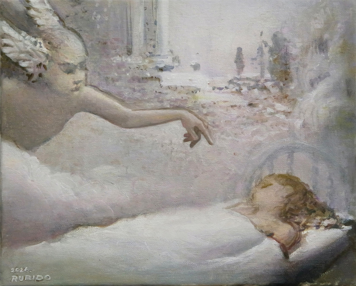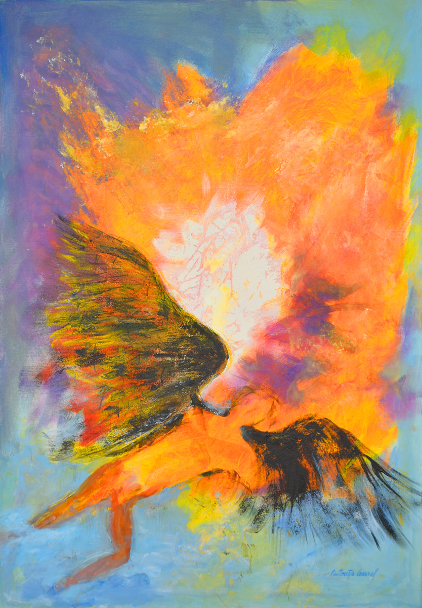 Dalibor Rubido na svojoj slici prikazuje nam lik Morfeja, grčkog boga odgovornog za oblikovanje bića što nam se javljaju u snovima, a Marija Čingel u apstraktnim pretakanjima boje dočarava biblijski motiv gorućeg grma iz Knjige Izlaska, kao simbol božije prisutnosti i u nedokučivim prirodnim pojavama. I na kraju nam se predstavlja umjetnica Sanja Fališevac sa svojom skulpturom ”Fenix – Iznad sutona”, koja prikazuje mitsku pticu u međuprostoru kad stari oblik nestaje, a novi se još nije do kraja razvio, čime nam umjetnica sugerira ”tamnu noć duše” kao nužnu fazu suočavanja i otpuštanja naših gubitaka, prije početka novog životnog ciklusa.